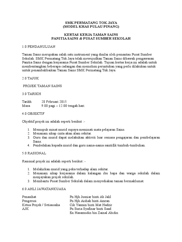 Contoh Kertas Kerja Taman Sains